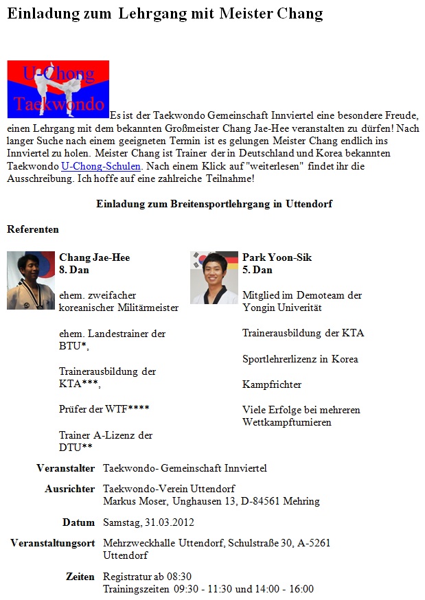 - U-Chong TKD/Hapkido Seminar in Rom 30.04-01.05 16